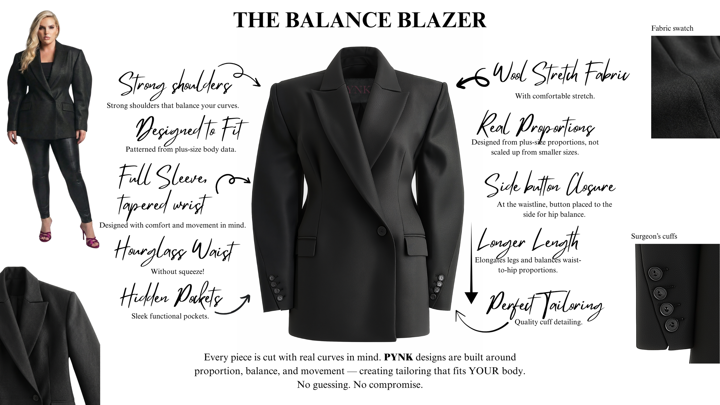 Most plus-size workwear is adapted from smaller patterns — not designed for real proportions.